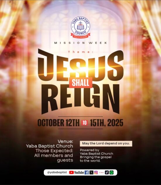 Welcome to Yaba Baptist Church, Lagos! We are delighted to welcome you to our online platform. Whether you're seeking spiritual guidance, community, or simply exploring, we're here to support you on your journey. Join us as we come together in worship, fellowship, and service.