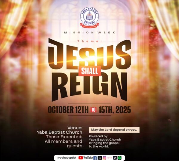 📍 Venue: Yaba Baptist Church – 19/23 Commercial Avenue/Raymond Street, Sabo, Yaba, Lagos
